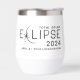 Capture the celestial magic of the 2024 total solar eclipse with this exclusive personalized thermal wine tumbler. Commemorating the awe-inspiring event on April 8, this wine tumbler becomes a timeless keepsake of cosmic wonder. Customize it with your chosen location, ensuring a unique memento of where you witnessed this extraordinary phenomenon. Featuring a simple design depicting the eclipse, this wine tumbler celebrates the celestial beauty that graced the skies. Use it proudly as a testament to the remarkable experience.