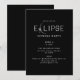 This modern invitation is a sophisticated and stylish design for an eclipse viewing party for the 2024 total solar eclipse on April 8th. The design features a sleek, black and white colour scheme with a clever play on the word "Eclipse," incorporating a graphic that symbolizes the celestial event. The crisp white lettering stands out against the black background, inviting guests to join the festivities. This invitation is perfect for those looking to host an intimate gathering of friends and family to witness and celebrate the rare and stunning spectacle of a total solar eclipse. The minimalist design communicates all necessary details clearly and elegantly. Available as a digital download or printed invitations.