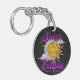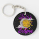 Round black keychain with vintage sun and moon to celebrate the 2024 Solar eclipse