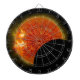 The dark shadow of the moon crosses in front of the sun during a solar eclipse captured in space and enhanced in this image.