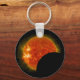 The dark shadow of the moon crosses in front of the sun during a solar eclipse captured in space and enhanced in this image.