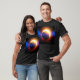 A solar eclipse (the moon covering the sun), with the typical "lens-flare" effect in blue.