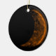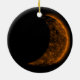 The orange boiling sun is eclipsed by the shadow of the dark moon, as seen from space during a solar eclipse event. This could be the phase of a partial or total solar eclipse