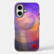 This case has an artistic abstract cosmic design with geometric shapes and beautiful, transparent / watercolor like colours (purple, yellow, orange). This product can be customized by adding text.