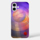 This case has an artistic abstract cosmic design with geometric shapes and beautiful, transparent / watercolor like colours (purple, yellow, orange). This product can be customized by adding text.