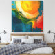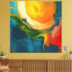 A blazing sun bursts through waves of colour and energy, as if the world were being born in vibrant brushstrokes. The movement of shapes evokes wind, sea, and fire in a cosmic dance of light and creation.