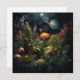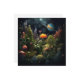 The colors of the planets blend seamlessly with the vibrant colors of the flowers to evoke a sense of harmony and awe.