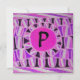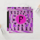 SOLAR MONOGRAM,bright pink fuchsia black white Invitation
