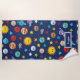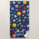 Celebrate the solar system with this cheerful custom outer space themed bathroom beach towel. Towel has a happy sun, happy planets (Mercury, Venus, Earth, Mars, Jupiter, Saturn, Uranus, and Neptune), as well as happy dwarf planet Pluto, asteroids, and stars. Personalize the towel with your young space lover's first name. Makes a great personalized birthday, Christmas, or other holiday gift!