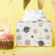 Love space? This wrapping paper adds a great custom touch to your gift. The pattern has drawings of planets Mercury, Venus, Earth, Mars, Jupiter, Saturn, Uranus, and Neptune, as well as a drawing of the moon. The drawings are sketched in boho style and the colours are in shades of brown and blue. Gift wrap may be personalized with a name or other text.
