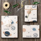 Love space? This wrapping paper sheet set adds a great custom touch to your gift. The pattern has drawings of planets Mercury, Venus, Earth, Mars, Jupiter, Saturn, Uranus, and Neptune, as well as a drawing of the moon. The drawings are sketched in boho style and the colours are in shades of brown and blue. Gift wrap may be personalized with a name or other text.
