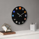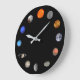 This clock starts with the sun at noon and works its way through 12 of the largest objects in the Solar System in order of distance from the sun: Mercury, Venus, Earth, Mars, Vesta, Ceres, Jupiter, Saturn, Uranus, Neptune, Pluto, and back to the sun at 12.
