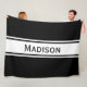 Solid Black White Stripes Modern Name Fleece Blanket