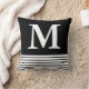 Solid Black With B/W Stripes Custom Monogrammed Throw Pillow