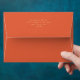 Modern colourful envelope for your wedding invitations and stationary in trendy bright orange. This shade of orange is called Verona Sunset. Details in faux gold, a silhuette of a delicate flower inside whn you open the envelope. Modern typography in contemporary minimalistic style on the outside.