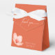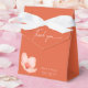 Modern favour box for your wedding in trendy bright orange. This shade of orange is called Verona Sunset. Details in faux gold, a silhuette of a delicate flower. Modern typography in contemporary style.