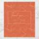 A modern bold orange wedding Thank you wine label in trendy bright orange. This shade of orange is called Verona Sunset. Details of fine line delicate flowers. Modern typography in contemporary style.