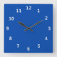 Pretty kitchen wall clock of a deep blue known as Cobalt blue. Twelve white numbers on a plain blue background. Perfect addition for a kitchen with a blue colour scheme