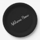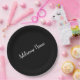 Solid Colour Modern Basic Black Monogrammed Paper Plate