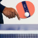 Solid Coral, Navy Blue Ribbon Name Monogram Ping Pong Paddle