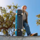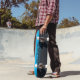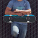 This solid two-colour design offers a base painted with dark grey accompanied by a bright blue edge. You can customize the name on the board.