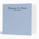 Plain blue binder that you can customize with your name or text on the front. The text on the spine can also be changed.