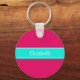 Solid Raspberry, Bright Aqua Ribbon Name Monogram Keychain