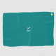 Golf towel with blue-green , teal solid colour background and light grey font .Simple and trendy design by Alma Wad .Personalize it with your monogram now ..