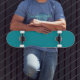Skateboard with a solid Teal Green background ready for you to use as is or to customize with your own images or text.