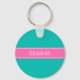 Solid Teal, Hot Pink #2 Ribbon Name Monogram Keychain