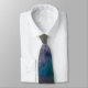 Dazzling, Multicolored tie showing a portion of the infinite universe. Bright central star and glowing nebulae. Greens, blues, yellows, purples and reds.