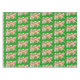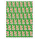 A cute orange tabby laying across a game of solitaire in a backdrop of green