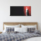 A powerful and isolating piece of dramatic panoramic canvas art. A solitary, white draped figure stands facing a red brick wall, contrasted sharply by a vast expanse of deep black space. This artwork uses bold texture and high contrast to evoke feelings of mystery, isolation, and contemplation. Perfect for adding a sophisticated, moody, and narrative-driven focal point to a minimalist, industrial, or contemporary space, especially over a sofa or long console table.