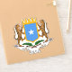 Somalia National Coat Of Arms Patriotic Sticker with the depiction of the Somalia Coat of Arms. Below the coat of arms is the inscription "Somalia" done in beautiful "Aceserif" font and the black colour. Inscription is on the bottom infused with the coat of arms but it can be freely moved or even deleted using "Customize it!" feature. Somalia coat of arms sticker is a fantastic gift and interesting present for any occasion. © 2021 CoutriesOfTheWorld
