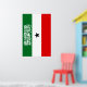 This design features the flag of Somaliland (officially the Republic of Somaliland), which is a self-declared state, internationally considered to be part of Somalia. The government of the de facto state of Somaliland regards itself as the successor state to the former British Somaliland protectorate, which, in the form of the briefly independent State of Somaliland, united as scheduled on 1 July 1960 with the Trust Territory of Somaliland (the former Italian Somaliland) to form the Somali Republic. Somaliland lies in northwestern Somalia, on the southern coast of the Gulf of Aden. It is bordered by the remainder of Somalia (per international recognition) to the east, Djibouti to the northwest, and Ethiopia to the south and west. The capital and the largest city of Somaliland is Hargeisa.