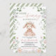 Celebrate the new arrival with this "Some Bunny is on the way" invitation. Featuring a sweet watercolor bunny in a pink dress surrounded by delicate floral vines. Perfect for a girl's garden or spring baby shower. Easily customize with your event details for a charming celebration.