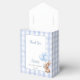 These charming 1st birthday party favor boxes feature a cute bunny holding balloons and a blue gingham background and thank you message under the lid. Designed by Thisisnotme©