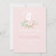 Some bunny is turning one birthday party invitation in pink and floral with gingham back.