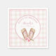 Some Bunny is turning one Birthday girl's party napkins. Lovely typography in pastel pink. Adorable watercolor bunny ears with pink wildflowers on a pastel pink gingham background. Easy personalize your special Birthday girl's name.