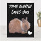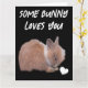 Some bunny loves you with a tiny brown baby bunny snuggled up just about to go off to sleep in dreamland knowing they have some bunny that loves them. .