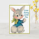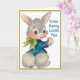 This sweet vintage Easter card features an adorable cotton tailed bunny rabbit in a blue jacket and green bow writing out the words "Some Bunny Loves You." Personalize by customizing the message on the inside and/or adding your name(s) - or leaving that field blank if you want to add handwritten signatures later.