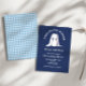 Some bunny special is on the way! Baby Shower invitation in navy blue with gingham back.