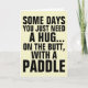 SOME DAYS YOU JUST NEED A HUG....ON THE BUTT, WITH A PADDLE GREETING CARDS. BLANK INSIDE SO YOU CAN WRITE YOUR OWN MESSAGE