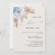 For a modern boho style bridal shower. A beige background. Decorated with a dusty blue rose, pampas grass. Personalize and add a name and party details.