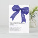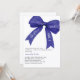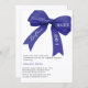 An elegant white background, decorated with large dark blue bow. Personalize and add a name and party details.