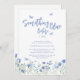 Are you planning a special bridal shower? This charming floral bridal shower invitation is decorated with blue watercolor flowers and butterflies. It says "Something Blue Before I Do" in stylish script typography. Easily customizable. Original Watercolor © Michele Davies.