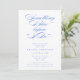 An elegant vintage style "something blue before "I do" bridal shower invitation with vintage calligraphy font in French Blue. On the reverse is a blue floral chinoiserie pattern.