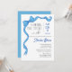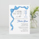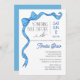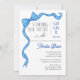 Something Blue Bow Bridal Shower Invitation. Celebrate the bride-to-be with this charming "Something Blue" bridal shower invitation. Featuring a whimsical hand-drawn blue ribbon and bow, this design embodies the classic tradition with a playful twist. The elegant typography clearly displays all the essential details, including the date, time, location, and RSVP information, ensuring your guests have everything they need. This invite is perfect for setting a joyful and stylish tone for your upcoming bridal shower celebration, honoring the bride in a memorable way.