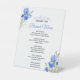 Elegant bridal shower brunch menu pedestal sign in a soft something blue floral style. Designed for a Blue Iris “Before I Do” bridal shower, perfect for displaying brunch favorites, light bites, sweet treats, and drinks. Ideal for bridal showers and brunch celebrations.