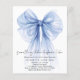 Budget-friendly bridal shower invitation featuring a beautiful hand-painted watercolor of a large blue coquette bow, "something blue before I do" in a chic script, and the bride's name and the event details in simple modern lettering. This budget semi-gloss paper is similar in weight to photo paper. A larger 5x7 traditional card stock version is also available (message us for the link).